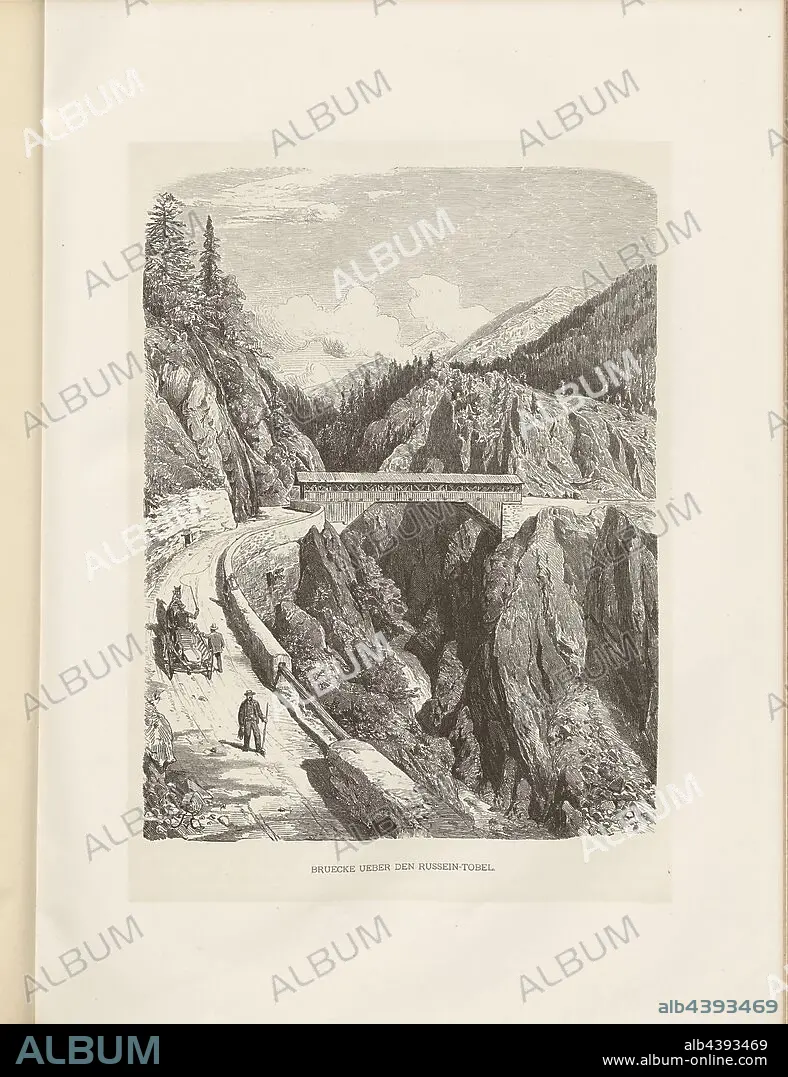 Bridge over the Russein-Tobel, Illustration of the wooden bridge over the Russeintobel from the 19th century, signed: T. v., E, Fig. 329, p. 374, Eckenbrecher, Themistokles von, Woldemar Kaden: Das Schweizerland: eine Sommerfahrt durch Gebirg und Thal. Stuttgart: Engelhorn, 1875