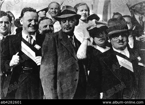 Maurice Thorez, A. Bayet and Jacques Duclos. France. July 14, 1935