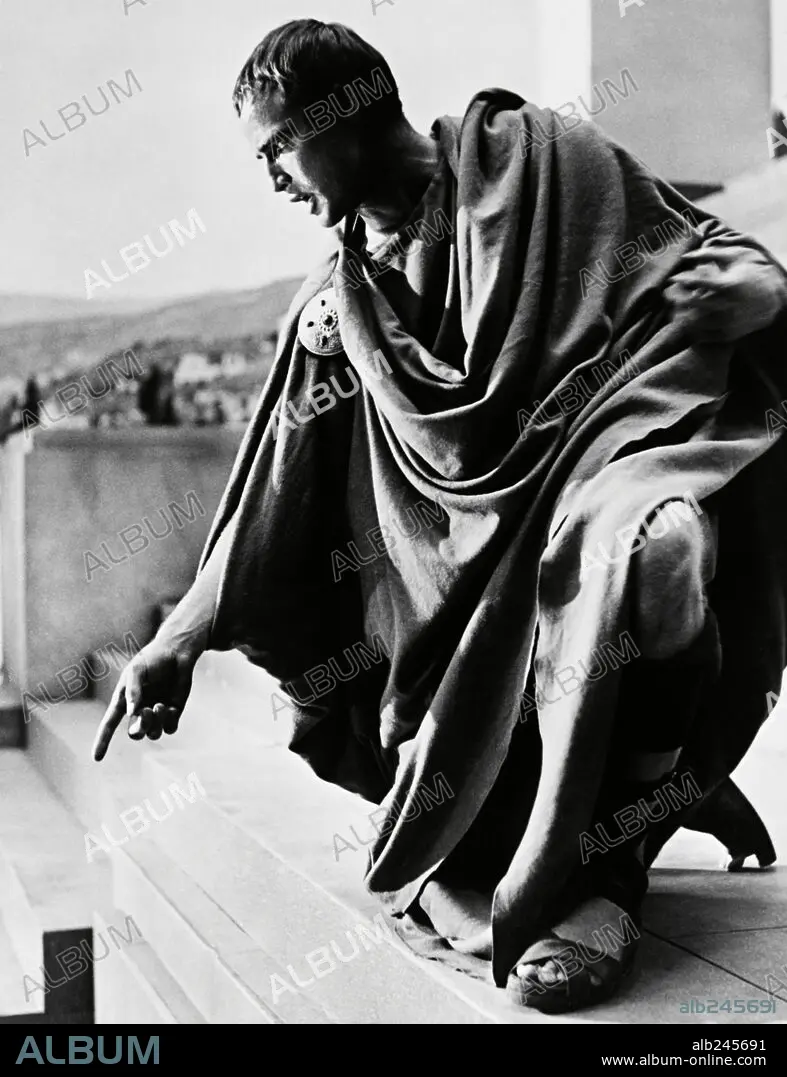 ANTONIUS (MARCUS ANTONIUS) y MARLON BRANDO. MARLON BRANDO en JULIO CESAR, 1953 (JULIUS CAESAR), dirigida por JOSEPH L. MANKIEWICZ. Copyright M.G.M.