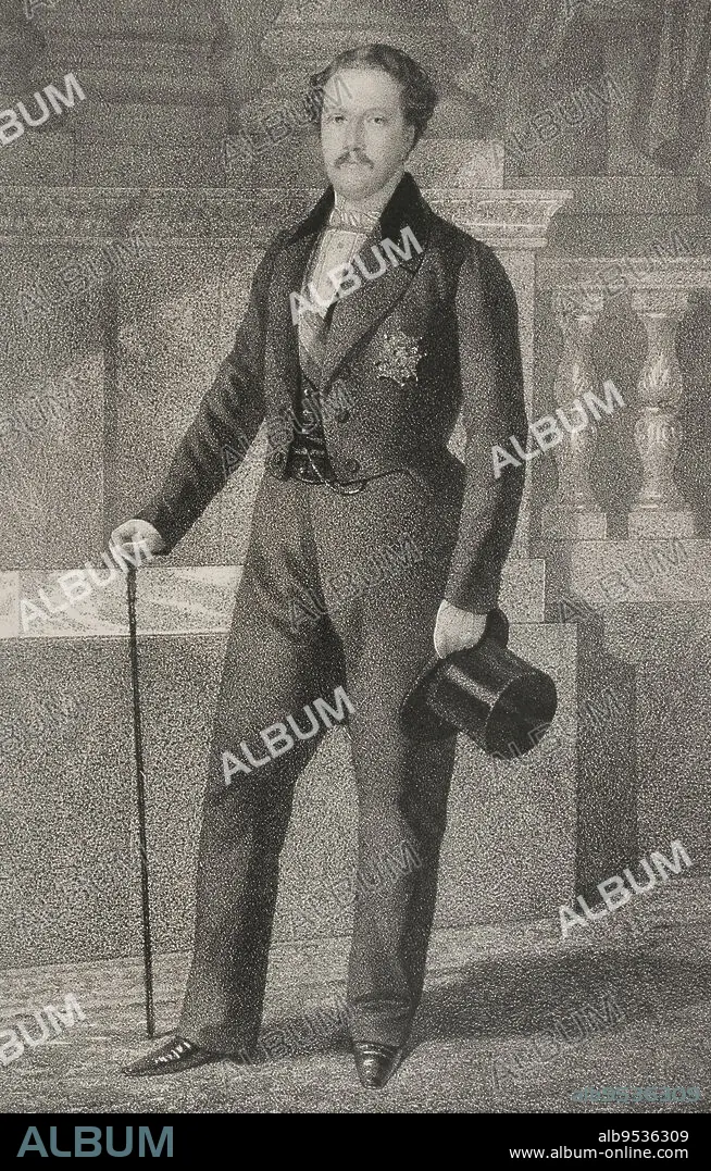 BERNARDO BLANCO (1828-1876). SPANISH LITHOGRAPHER. J. J. MARTINEZ. 19TH CENTURY SPANISH ARTIST.. Francisco de Asís de Borbón (1822-1902). Rey consorte de España (1846-1868) por su matrimonio en 1846 con su prima Isabel II de Borbón. Retrato. Dibujo por B. Blanco. Litografía por J.J. Martínez. Reyes Contemporáneos. Tomo I. Publicado en Madrid, 1855.