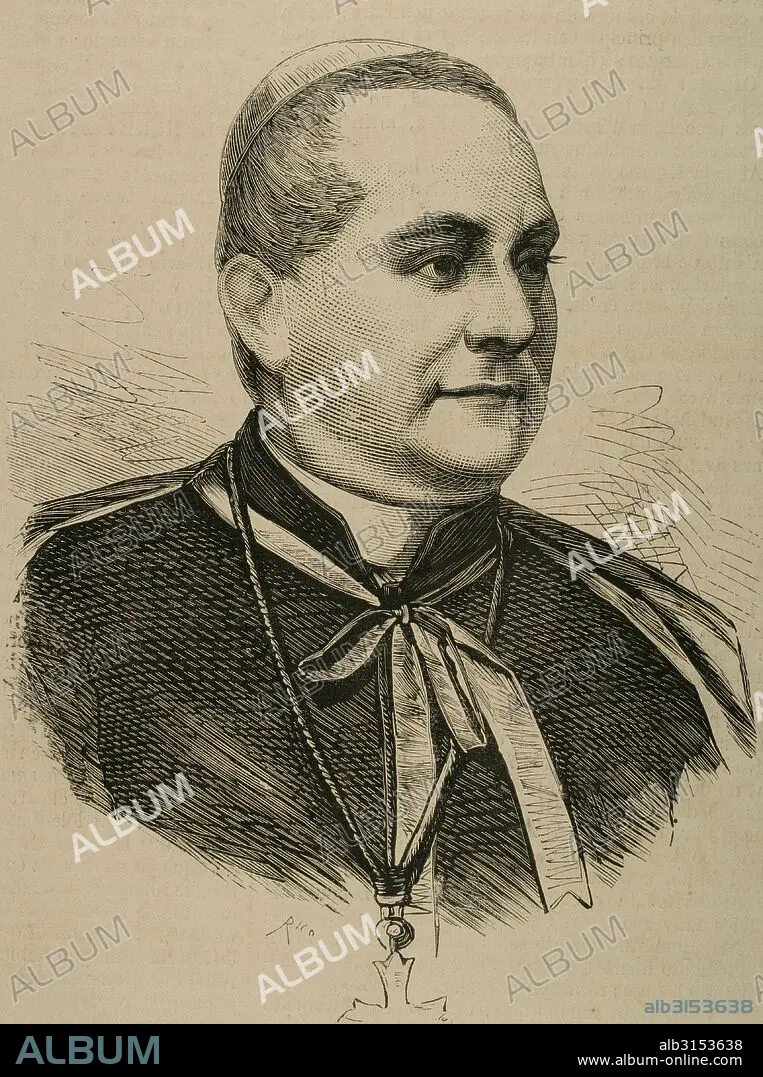Alessandro Franchi (1819-1878). Cardenal católico italiano y arzobispo. Retrato. Grabado por Rico. La Ilustración Española y Americana, 1878.