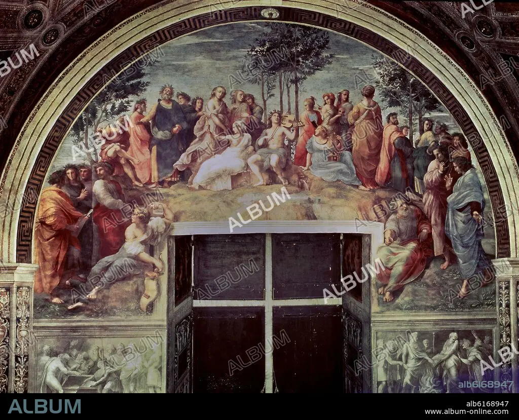 RAFAEL SANZIO O RAFAEL DE URBINO (1483-1520). PINTURA AL FRESCO DE LA ESTANCIA DEL SELLO QUE REPRESENTA EL PARNASO, PRIMERA OBRA DE RAFAEL EN EL VATICANO - SIGLO XVI - RENACIMENTO