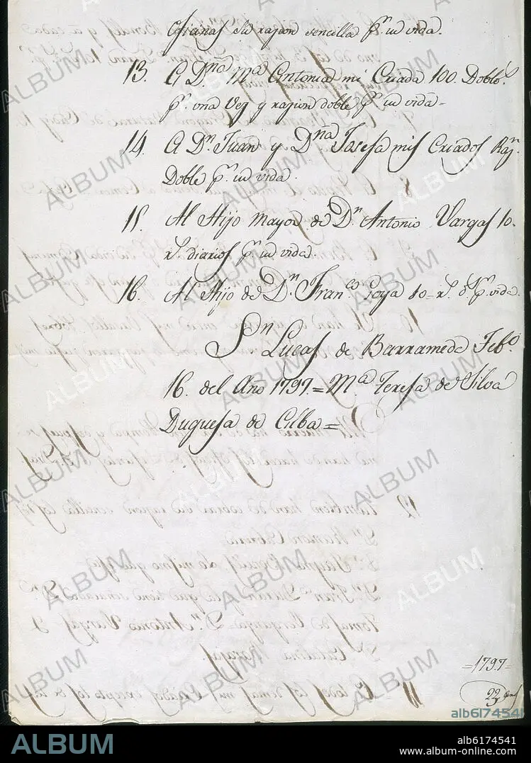TESTAMENT OF THE DUCHESS OF ALBA-MARIA DEL PILAR TERESA CAYETANA DE SILVA Y ALVAREZ DE TOLEDO-1799-U