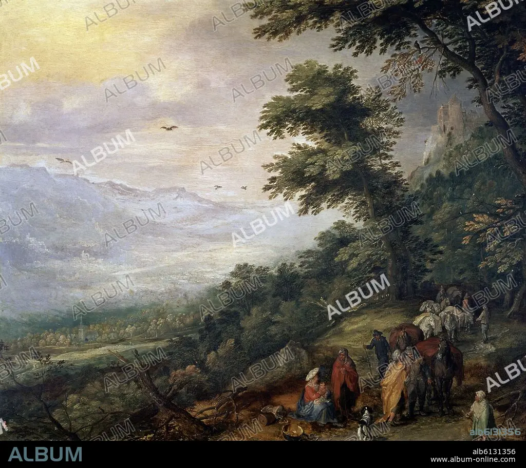 JAN BRUEGHEL DE VELOURS-BRUEGHEL EL. RECUA Y GITANOS EN UN BOSQUE - 1614 - OLEO/COBRE - 36X43 - NP 1432 - ESCUELA FLAMENCA