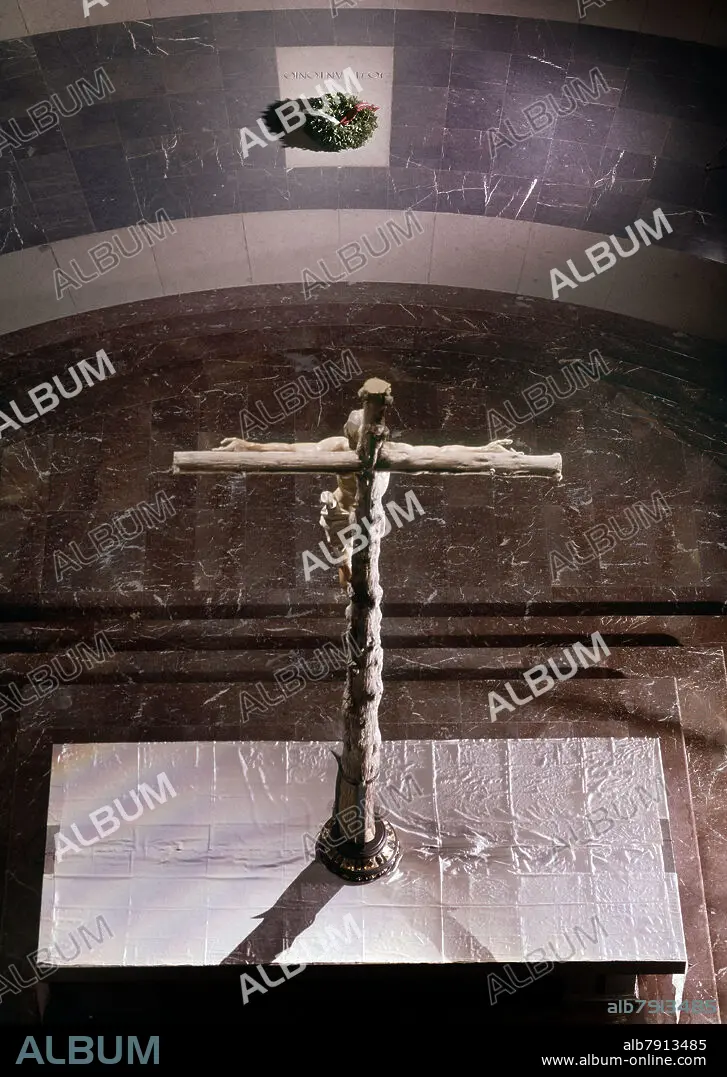 CRISTO DEL ALTAR MAYOR CON LA TUMBA DE JOSE ANTONIO PRIMO DE RIVERA AL FONDO.