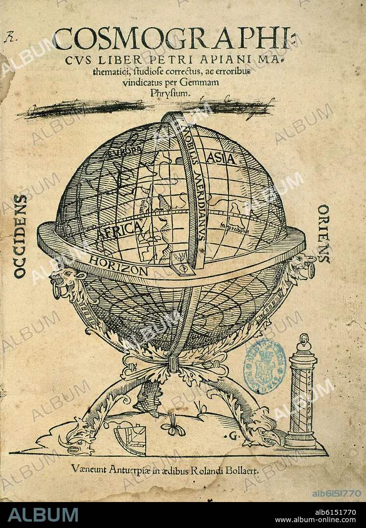 PEDRO APIANO (1495-1552). COSMOGRAPHIA 1524. PORTADA. ESFERA TERRESTRE-PORTADA. LIBRO CIENTIFICO S XVI