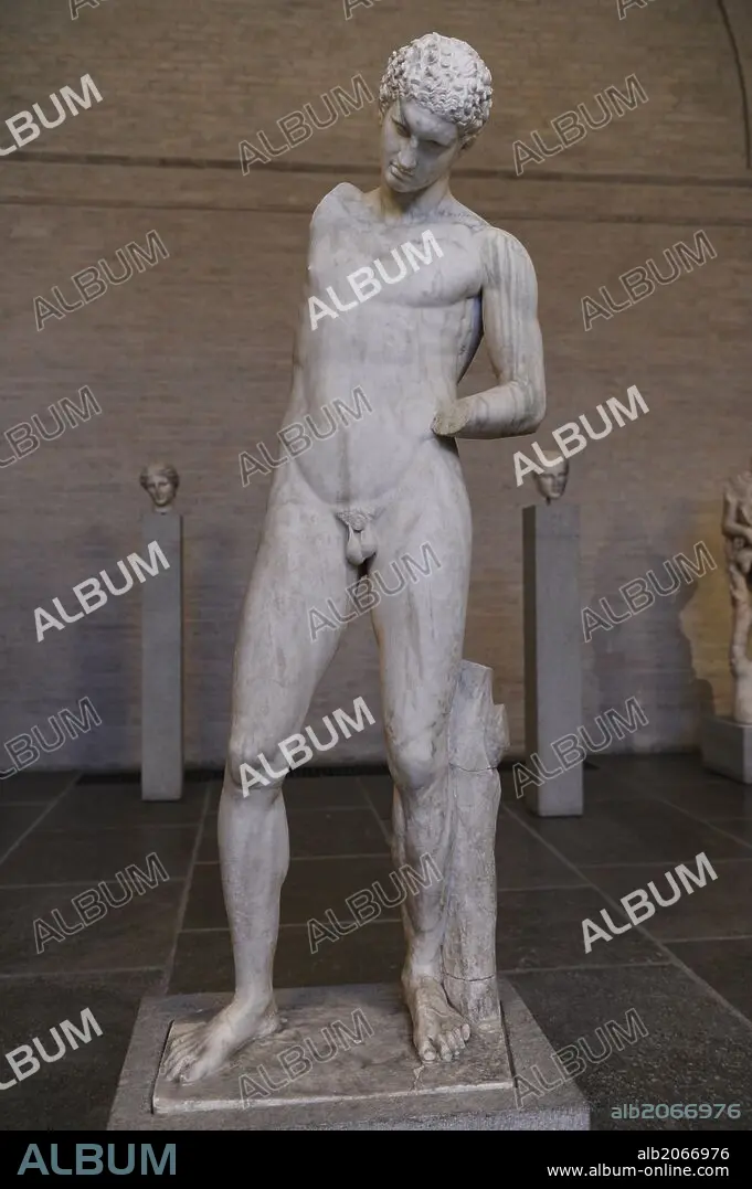 ARTE GRIEGO. GRECIA. ATLETA. Copia romana de un original griego posterior al 360 a. C. Joven derramando aceite en su mano izquierda. Glyptothek. Munich. Alemania. Europa.