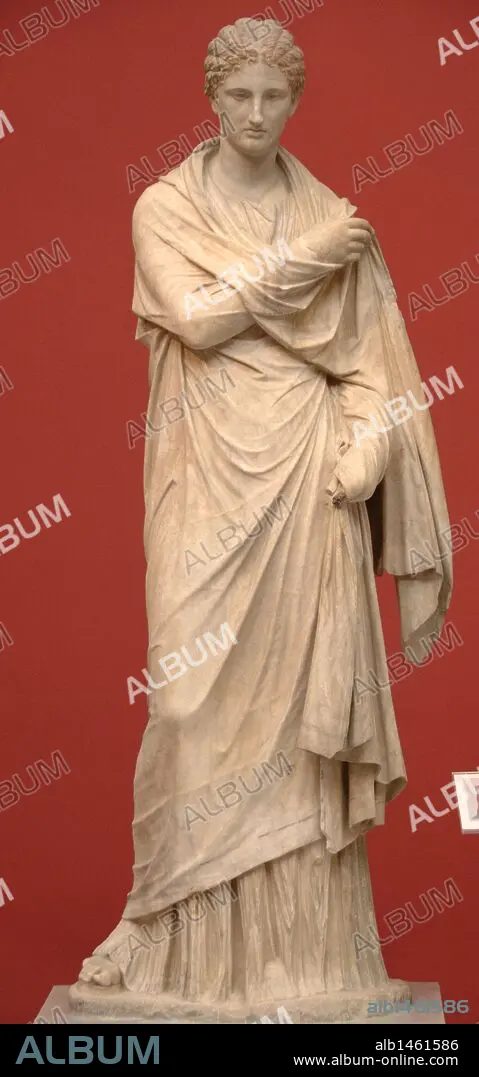 ARTE GRIEGO. GRECIA. ESTATUA FUNERARIA DE MUJER esculpida en mármol. Localizada en Delos. Copia realizada en el s. II a. C. del original datado en el año 300 a. C. Museo Arqueológico Nacional. Atenas. Grecia.