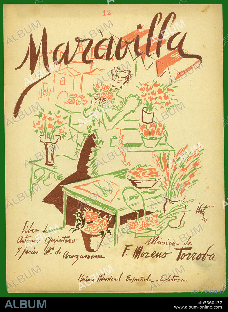 Partitura musical de la comedia lírica Maravilla, de Fernando Moreno Torroba. Madrid, año 1941.