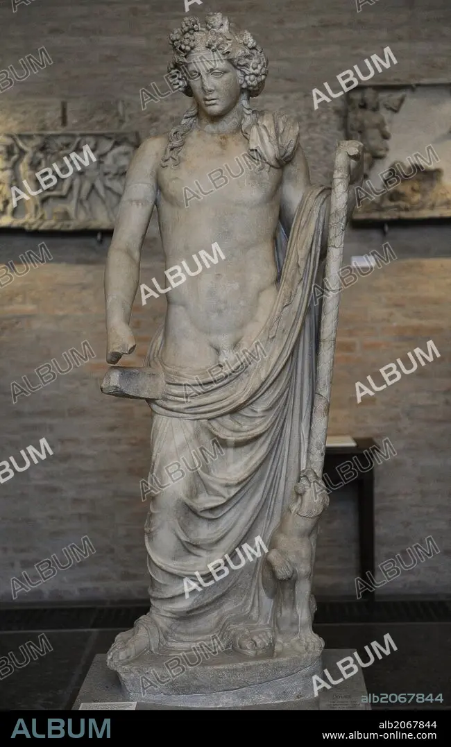 MITOLOGIA CLASICA. Dios del vino "DIONISO". Escultura del "Dionisos Bevilacqua". Copia romana de un original del siglo IV a. C. Glyptothek. Munich. Alemania. Europa.