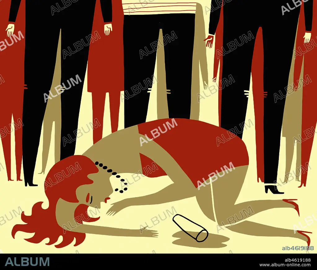 Drunk woman collapsed on floor at party.