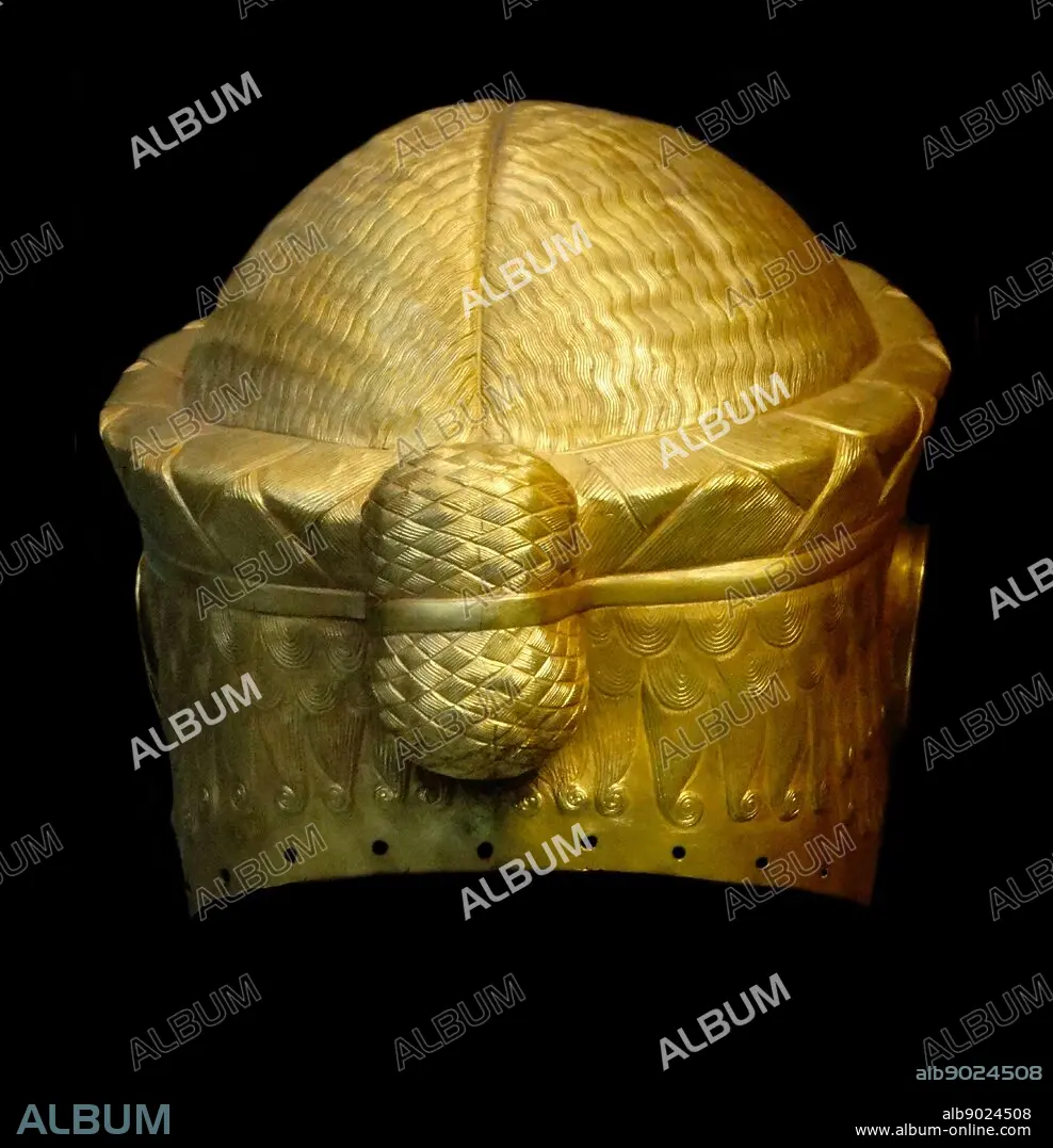 Electrotype of gold helmet of Meskalamdug; Early Dynastic III. 2600BC Royal Cemetery at Ur, Iraq. Meskalamdug ('hero of the good land') was an early ruler of Ur, who does not appear in the Sumerian king list. His tomb, discovered by English archaeologist Sir Leonard Woolley in the Royal Cemetery of Ur in 1924, contained numerous gold artefacts including this golden helmet with an inscription of the king's name