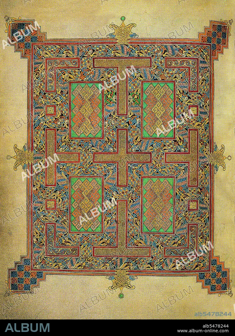 The Lindisfarne Gospels is an illuminated manuscript gospel book produced around the year 700 CE in a monastery on Lindisfarne Island, off the coast of Northumberland. It is now on display in the British Library in London. The manuscript is one of the finest works in the unique style of Hiberno-Saxon or Insular art, combining Mediterranean, Anglo-Saxon and Celtic elements. The Lindisfarne Gospels are presumed to be the work of a monk named Eadfrith, who became Bishop of Lindisfarne in 698 and died in 721. Current scholarship indicates a date around 715, and it is believed they were produced in honour of St. Cuthbert. However, it is also possible that Eadfrith produced them prior to 698, in order to commemorate the elevation of Cuthbert's relics in that year, which is also thought to have been the occasion for which the St Cuthbert Gospel was produced. The Gospels are richly illustrated in the insular style, and were originally encased in a fine leather binding covered with jewels and metals made by Billfrith the Anchorite in the 8th century. During the Viking raids on Lindisfarne, however, this cover was lost, and a replacement was made in 1852. The text is written in insular script. In the 10th century an Old English translation of the Gospels was made: a word-for-word gloss inserted between the lines of the Latin text by Aldred, Provost of Chester-le-Street. This is the oldest extant translation of the Gospels into the English language. The Gospels may have been taken from Durham Cathedral during the Dissolution of the Monasteries, ordered by Henry VIII, and were acquired in the early 17th century by Sir Robert Cotton from Thomas Walker, Clerk of the Parliaments. Cotton's library came to the British Museum in the 18th century, and from there to the British Library in London when this was separated from the British Museum.
