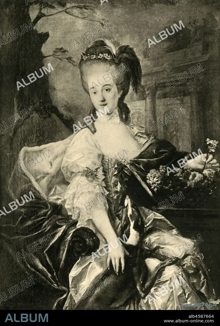 Princess Elzbieta Izabela Czartoryska, 1770s, (1903). Portrait of Polish noblewoman Izabela Lubomirska (1733-1816). Because of her liking for the colour blue, which she often wore, she was known as 'The Blue Marquise'. After 'The Portrait of Izabella Lubomirska of the Czartoryski family', painted c1770-1779 by Marcello Marcello Bacciarelli, in the collection of the The Wilanów Palace Museum, Warswaw, Poland. From "La Revue De L'Art Ancien et Moderne" - Volume XIV, July-December 1903, [Paris, 1903]