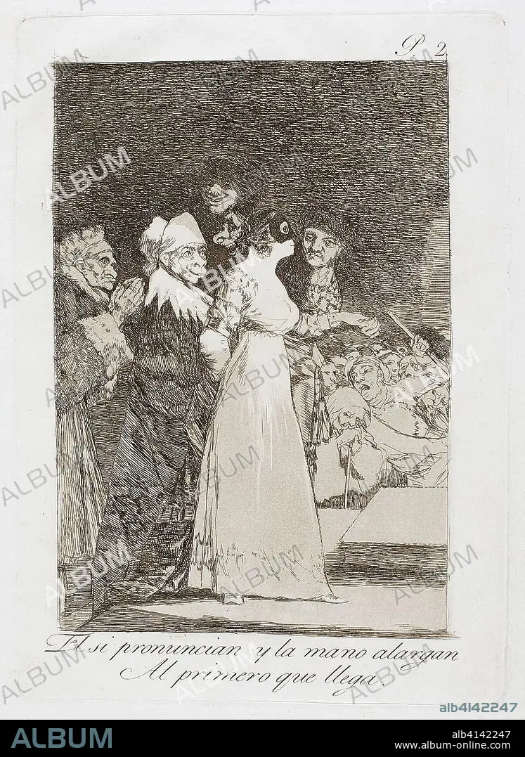 They Say 'Yes' and Give Their Hand to the First Comer, plate two from Los Caprichos. Francisco José de Goya y Lucientes; Spanish, 1746-1828. Date: 1797-1799. Dimensions: 179.5 x 123 mm (image); 215 x 153 mm (plate); 300 x 200 mm (sheet). Etching and aquatint on ivory laid paper. Origin: Spain.