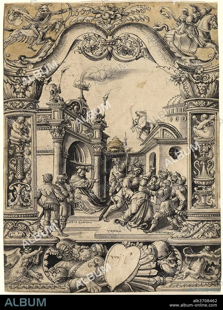 The Death of Virginia. Dated: c. 1525. Dimensions: overall: 43.2 x 33 cm (17 x 13 in.). Medium: pen and black ink with gray, yellow, and green washes on laid paper.