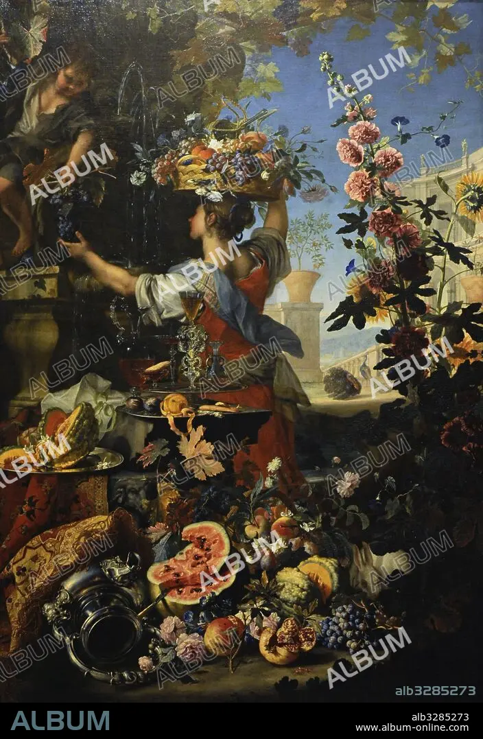 Descripción: Christian Berentz (1658-1722). Pintor barroco alemán. Carlo Maratta (1625-1713). Pintor italiano del alto barroco o barroco final. "Logia con Jardín", 1696. Museo de Capodimonte, Nápoles. Italia.