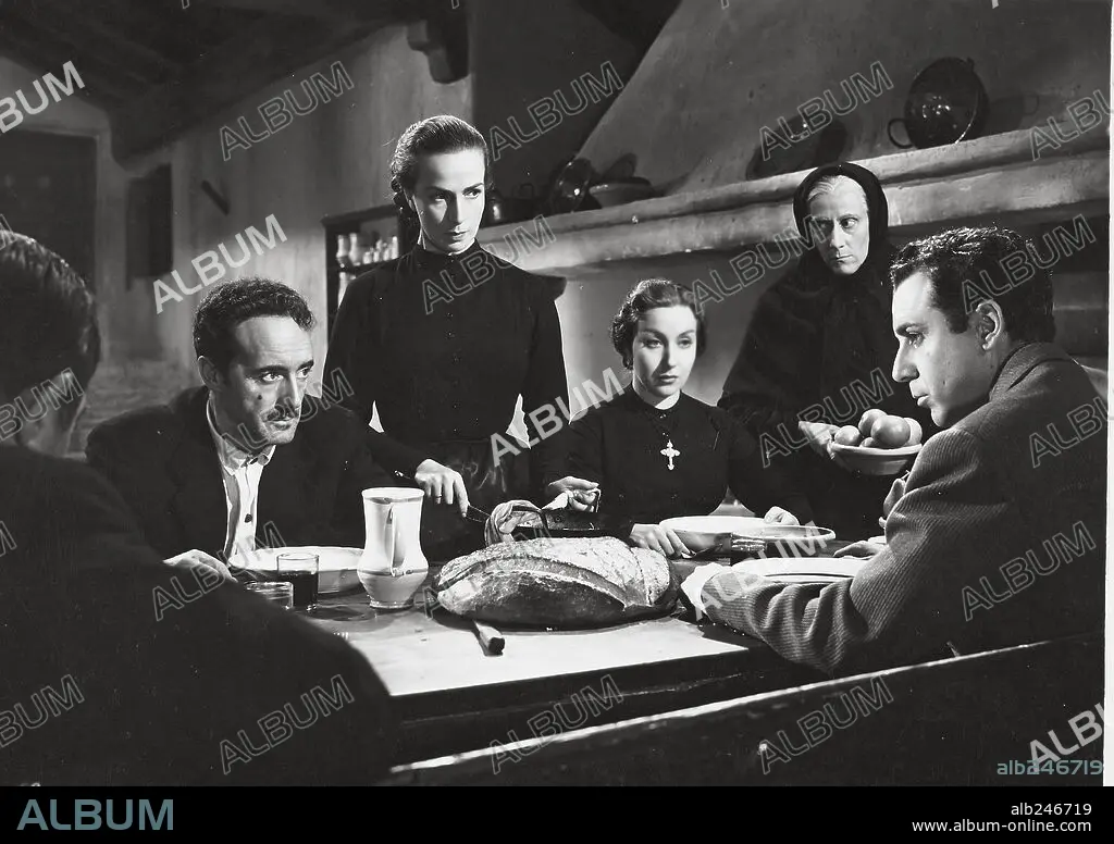 FERNANDO REY, JOSE MARIA LADO, MARIA JESUS VALDES, MARUCHI FRESNO y TOMAS BLANCO en LA LAGUNA NEGRA, 1952, dirigida por ARTURO RUIZ CASTILLO. Copyright SUEVIA FILMS.