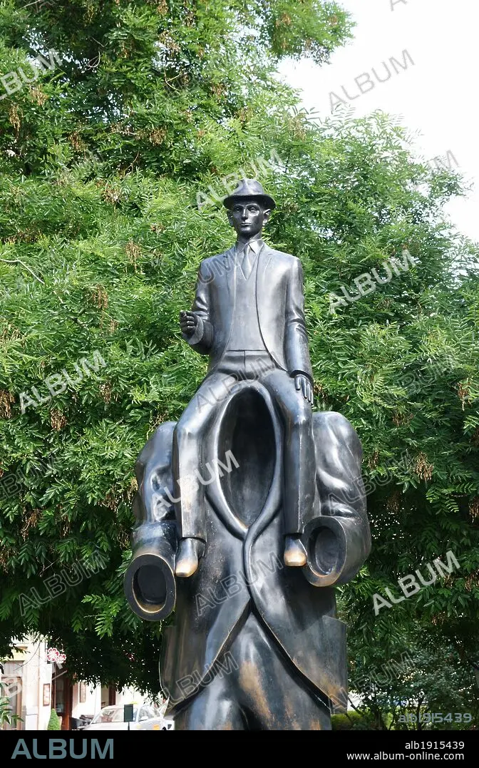 Descripción: REPUBLICA CHECA. PRAGA (PRAHA). Escultura realizada por Jaroslav Roná en homenje al escritor FRAZ KAFRA. Representa a una pequeña figura de Kafka sobre los hombros de un hombre sin cabeza, y fue inspirada en uno de los pasajes de su primer cuento "Descripción de una lucha", escrito alrededor de 1903, donde plantea la angustia del hombre frente al absurdo que le rodea. Barrio Josefov (Antiguo Barrio Judio) .