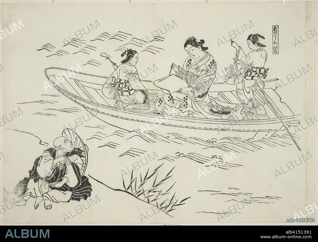 Eguchi and Love's Fishing Boat (Koi no tsuribune Eguchi), no. 4 from a series of 12 prints depicting parodies of plays. Okumura Masanobu; Japanese, 1686-1764. Date: 1711-1740. Dimensions: 27.2 x 38.6 cm. Woodblock print; oban, sumizuri-e. Origin: Japan.