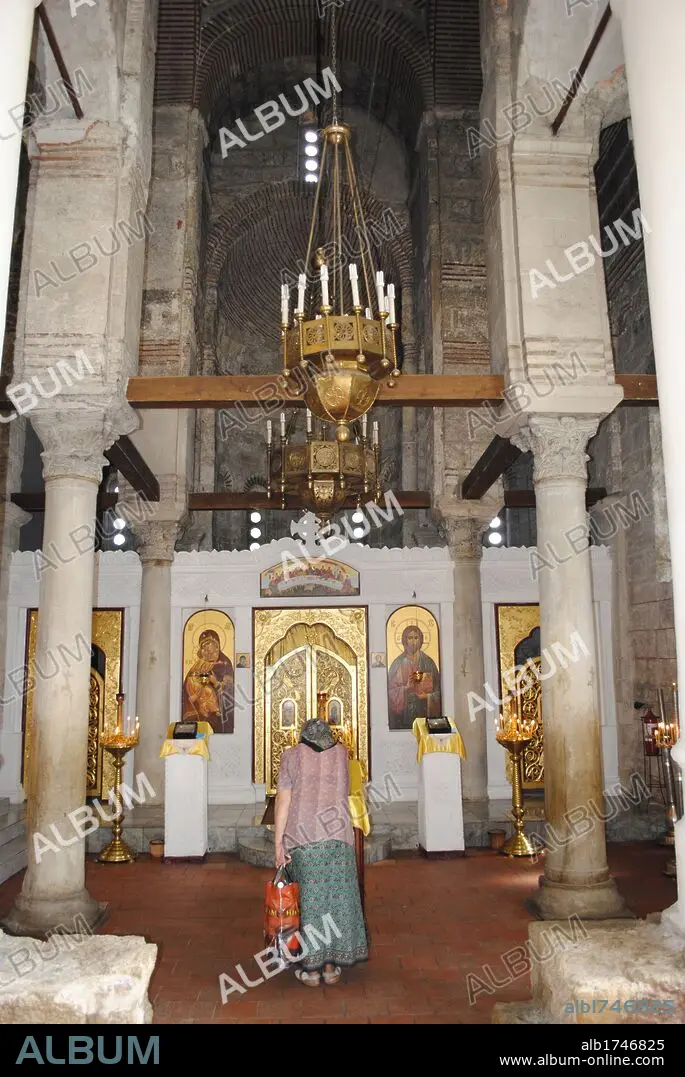 Descripción: RELIGION CRISTIANA. IGLESIA ORTODOXA. Celebración religiosa en el interior de la iglesia bizantina de SAN JUAN BAUTISTA fechada en el siglo VIII. Ciudad de Kerch. República Autónoma de Crimea. Ucrania. Europa Oriental.