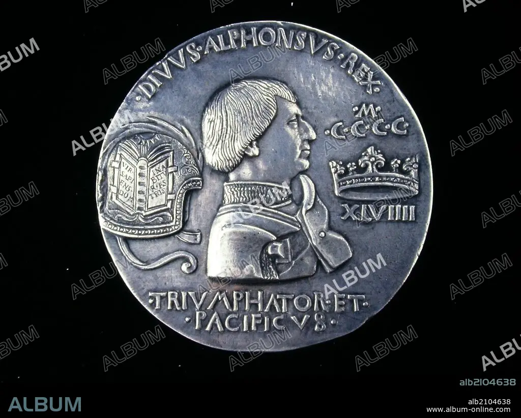NUMISMATICA. MEDALLA MEDIEVAL CRISTIANA. DE ALFONSO V EL MAGNANIMO, POR PISANELLO. ANVERSO. RETRATO DEL REY A LA DERECHA. CABEZA DESCUBIERTA. CON COTA DE MALLA Y ARMADURA. (DEPOSITO: MUSEO ARQUEOLOGICO NACIONAL).