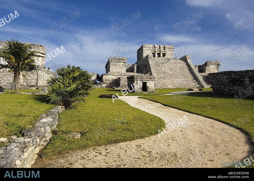 The castle, El Castillo, Mayan ruins of Tulum, 1200-1524, Tulum, Quintana Roo state, Mayan Riviera, Yucatan Peninsula, Mexico