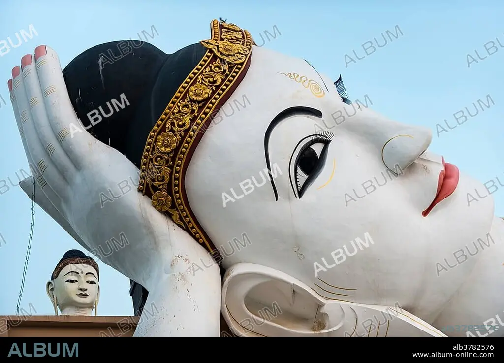 Lay Kyun Sakkya, standing Buddha statue behind the reclining Buddha statue, Maha Bodhi Ta Htaung, Monywa, Sagaing Region, Myanmar, Asia.