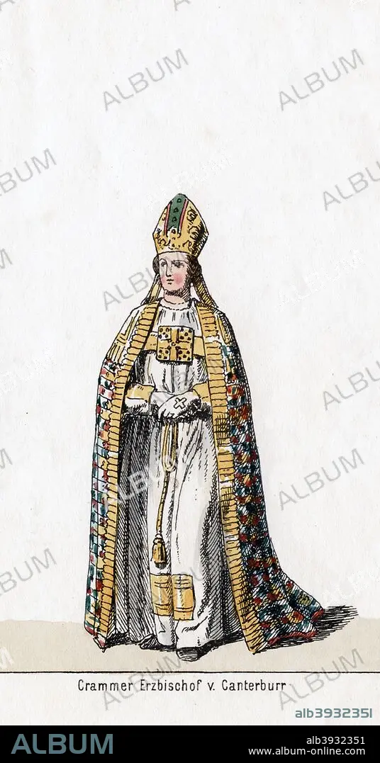 Thomas Cranmer, Archbishop of Canterbury, costume design for Shakespeare's play, Henry VIII, 19th century. A 19th-century costume design for William Shakespeare's (1564-1616) play, Henry VIII.