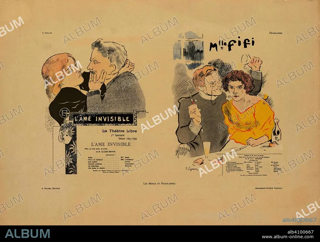 TANCREDE SYNAVE. Theatre programme for L'ame invisible by Claude Berton and Mademoiselle Fifi by Oscar Méténier after Guy de Maupassant (Théâtre Libre, 10 February 1896). Dimensions: 31.5 cm x 44.6 cm, 33.2 cm x 21.6 cm.