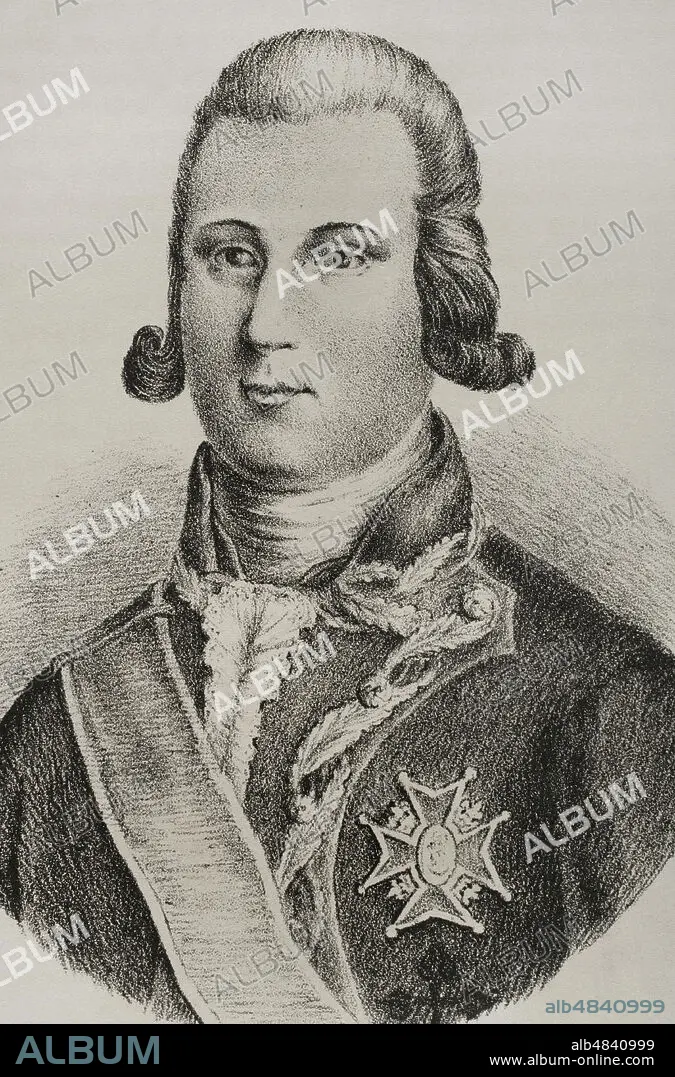 Luís Fermín de Carvajal Vargas y Brun, I conde de la Unión (1752-1794). Militar y hacendado español. Grabado. Detalle. Historia del Levantamiento, Guerra y Revolución de España, por el Conde de Toreno. Madrid,1851.