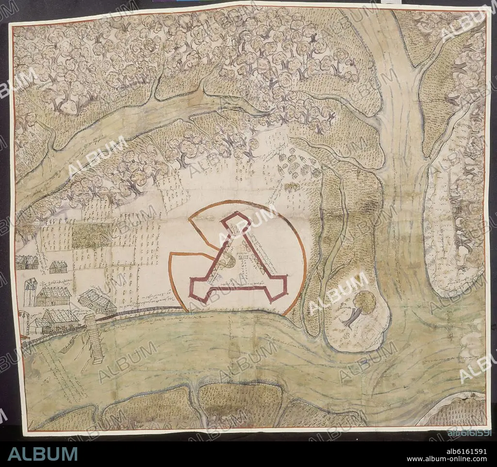 MAPA-PUEBLO Y FUERTE DE SAN AGUSTIN-FLORIDA-1595-CARTOGRAFIA SIGLO XVI