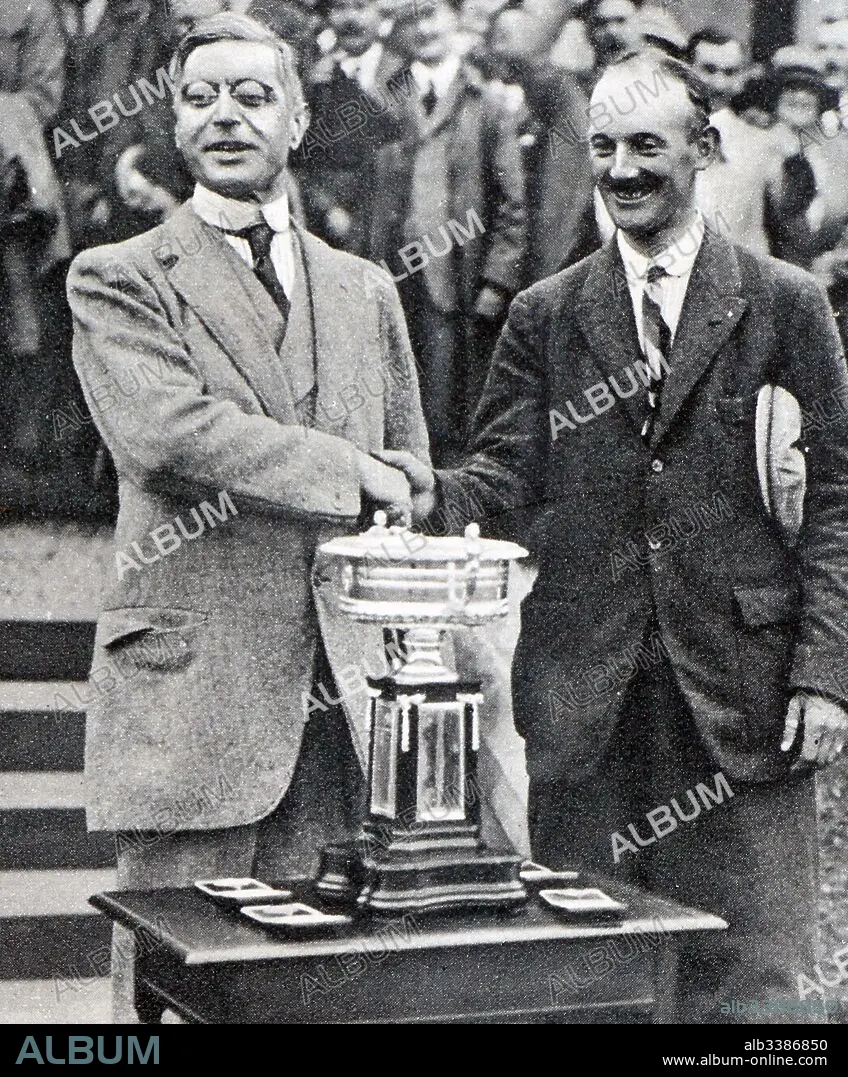 Photograph of Alexander Walker II (1869-1950) presenting an award to the new Scottish Amateur Golf Champion T. M. Burrell. Dated 20th Century.