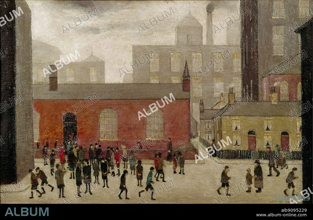 Out of School - 1927. by L S Lowry. in the Tate Gallery. Lawrence Stephen Lowry (November 1, 1887 - February 23, 1976) was an English artist born in Barratt Street, Old Trafford, Manchester. Most of his pictures depict Salford, where he lived and worked for over thirty years. Lowry is famous for painting scenes of life in the industrial districts of northern England during the early 20th century. He had a distinctive style of painting and is best known for urban landscapes peopled with many human figures. ©2006 TopFoto.