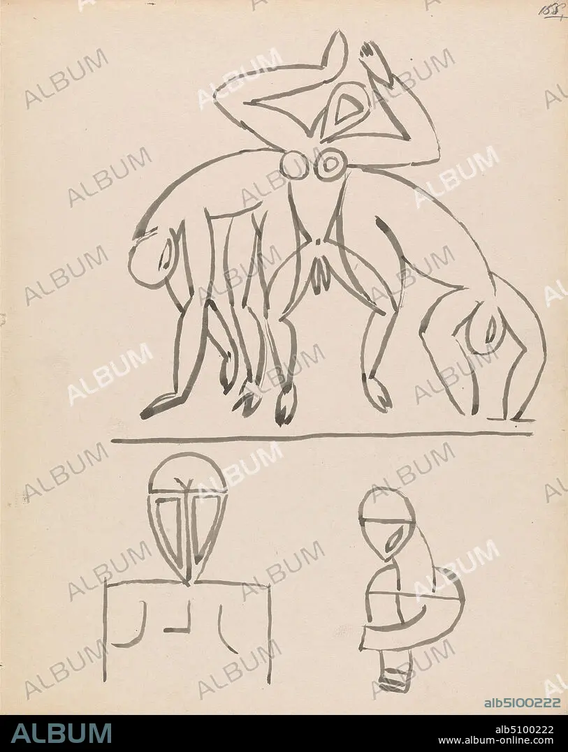 Nine Figure Studies, Henri Gaudier-Brzeska, 18911915, French, between 1910 and 1915, Black ink on medium, slightly textured, cream machine-made laid paper, Sheet: 9 x 7 1/8 inches (22.9 x 18.1 cm), abstract art, figure study, head, Vorticism.