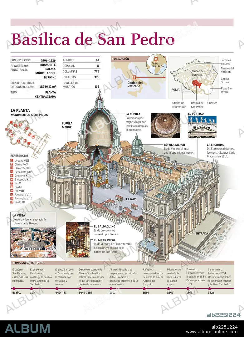 Infografía de la estructura interna de la basílica de San Pedro del Vaticano