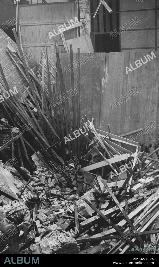 Jap attack on Singapore.A.RP. Workers searching for injured. February 20, 1942.