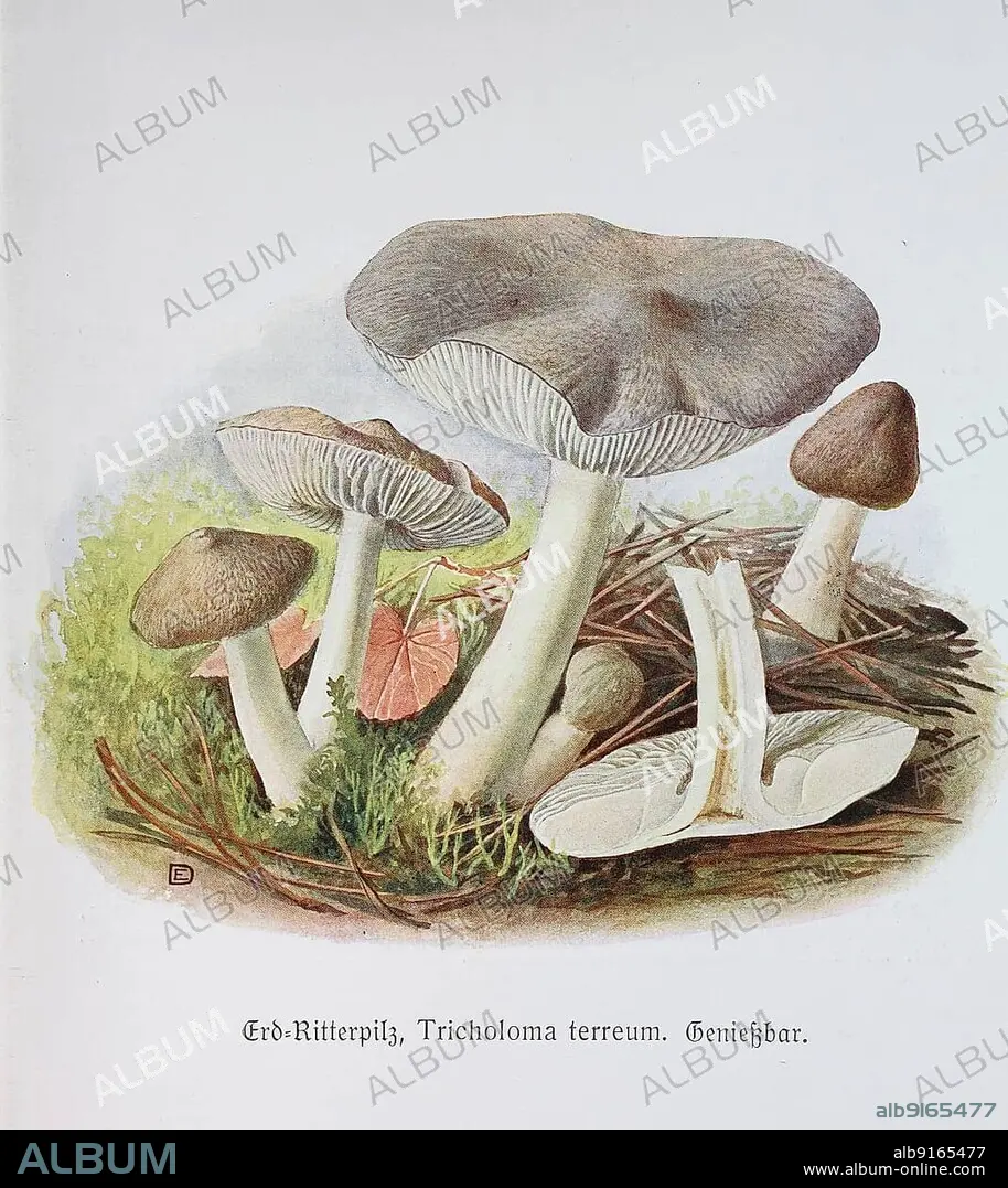 Mushroom, grey knight (Tricholoma terreum), Historical, digitally restored reproduction of an illustration by Emil Doerstling (1859-1940).