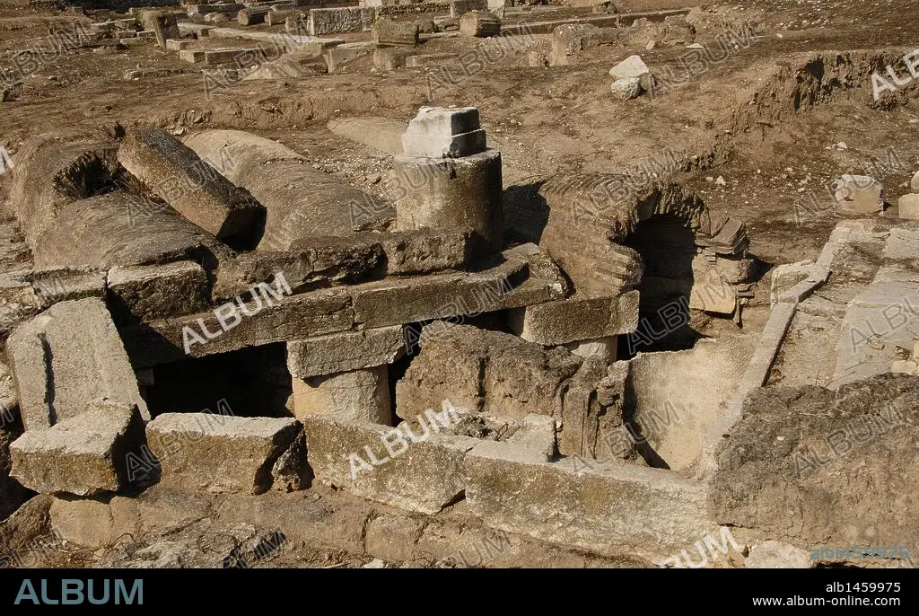 ARTE ROMANO. GRECIA. TERMAS DE ARGOS. Detalle de las ruinas. Provincia de Argolida. Región del Peloponeso.
