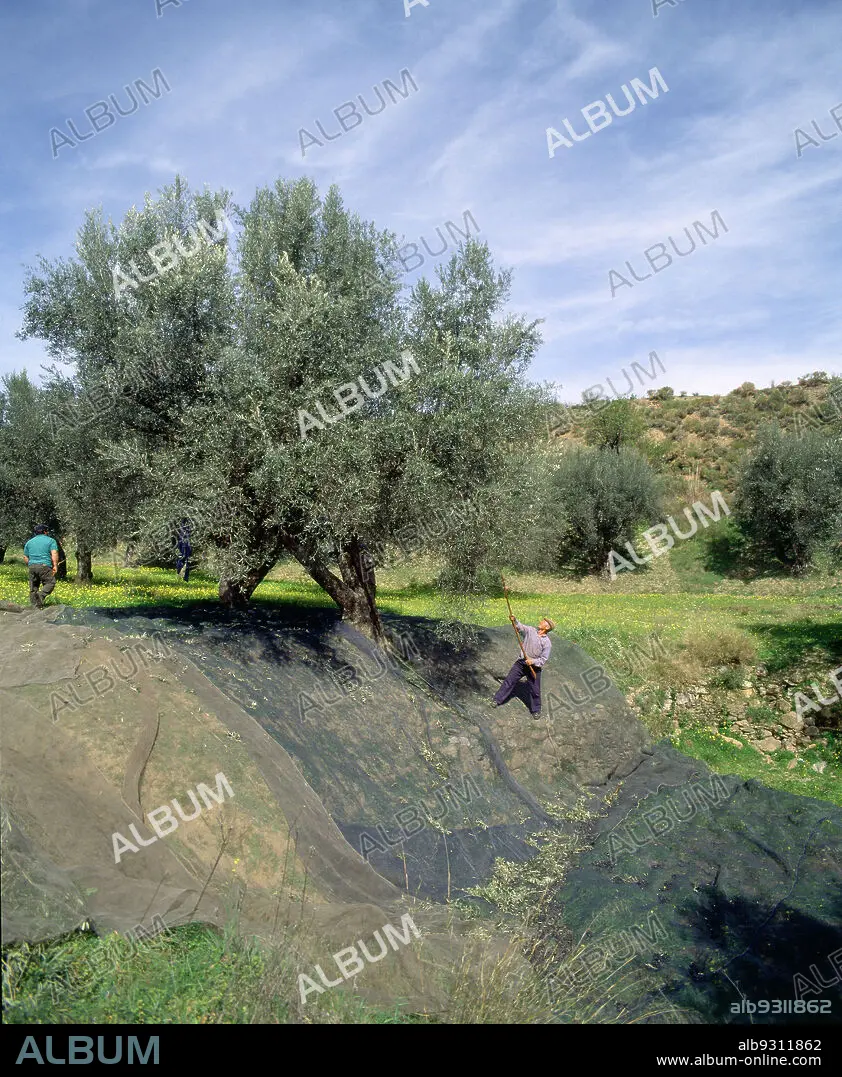 AGRICULTORES VAREANDO LA ACEITUNA EN EL MES DE MARZO
