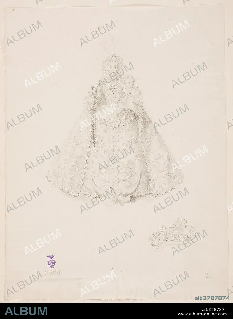 ANÓNIMO. Anónimo / 'La Virgen del Rosario'. Siglo XVIII. Lápiz negro sobre papel verjurado, 272 x 209 mm.