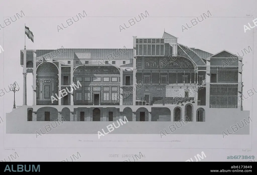 NARCISO PASCUAL COLOMER (1808-1870) ARQUITECTO. SECCION LONGITUDINAL DEL CONGRESO DE LOS DIPUTADOS - S XIX - MEMORIA HISTORICO-DESCRIPTIVA DEL NUEVO PALACIO DEL CONGRESO