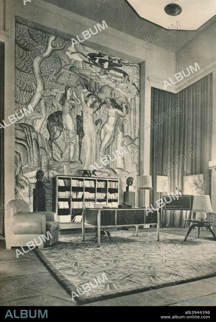 'A Collector's Study', c1925. Arranged and Furnished by Émile-Jacques Ruhlmann (1879-1933), mural painted by Jean Théodore Dupas (1882-1964), carpet by Fontaine. From The Studio Volume 92. [London Offices of the Studio, London, 1926]