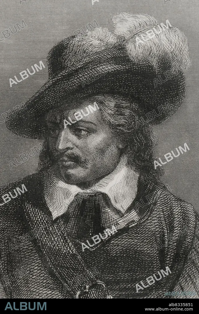 Oliver Cromwell (1599-1658). Político y militar inglés. Lord Protector de la república denominada Mancomunidad de Inglaterra (1653-1658). Retrato. Grabado. Historia Universal, por César Cantú. Tomo V. 1856.