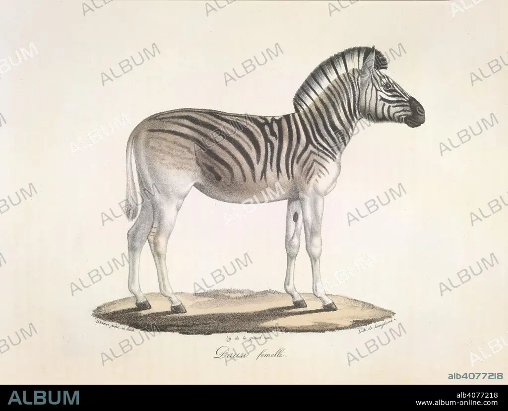 Dauw femelle. The striped quagga, or Burchell's zebra, of south Africa (Asinus Burchellii). Histoire Naturelle des Mammiféres, avec des figure. Paris, 1824-57. Source: 1257.l.1-4 volume 3,. Language: French.