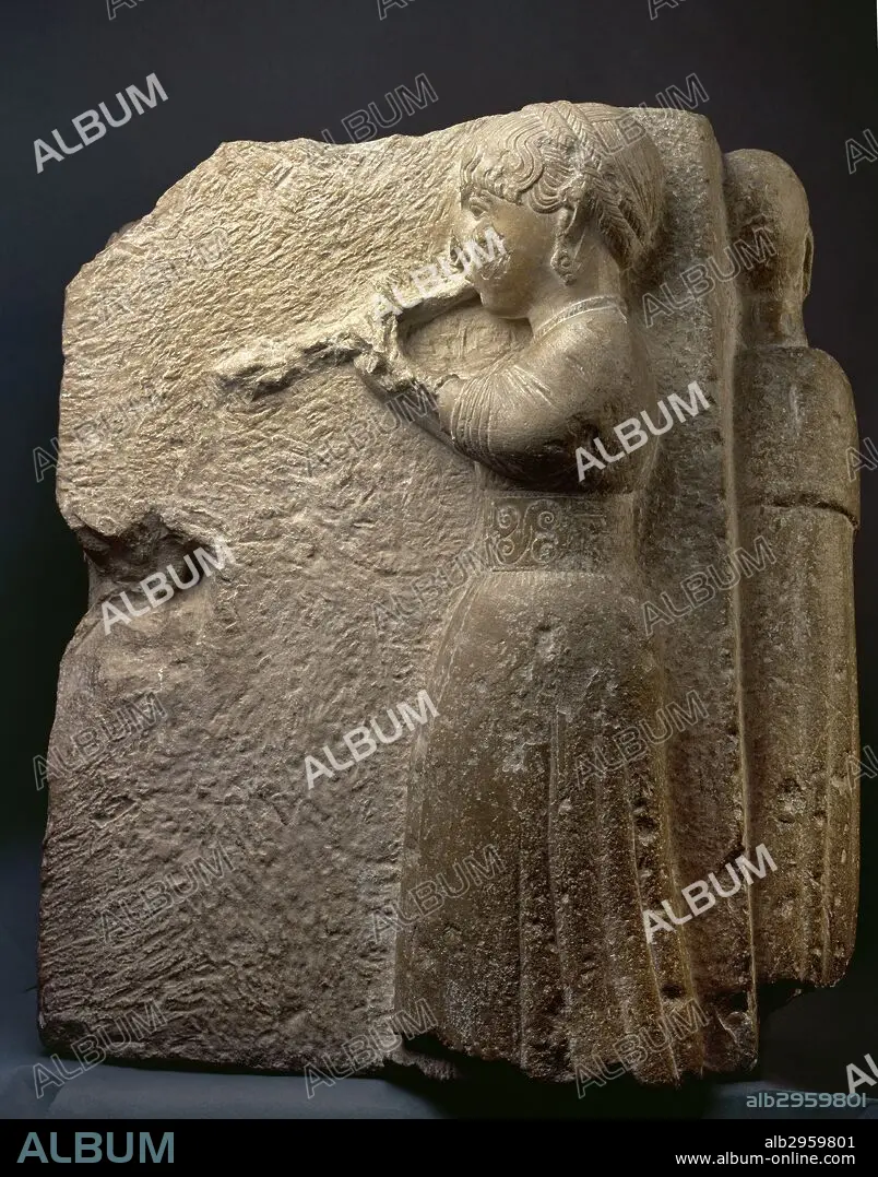 Descripción: Altorrelieve con la representación de una Auletris o tañedora de flauta. Sillar de esquina de un monumento funerario de la antigua Urso. Participa con su música en una ceremonia funeraria. Procede de Osuna (provincia de Sevilla, Andalucía). Siglos III-II a. C. Museo Arqueológico Nacional. Madrid. España.