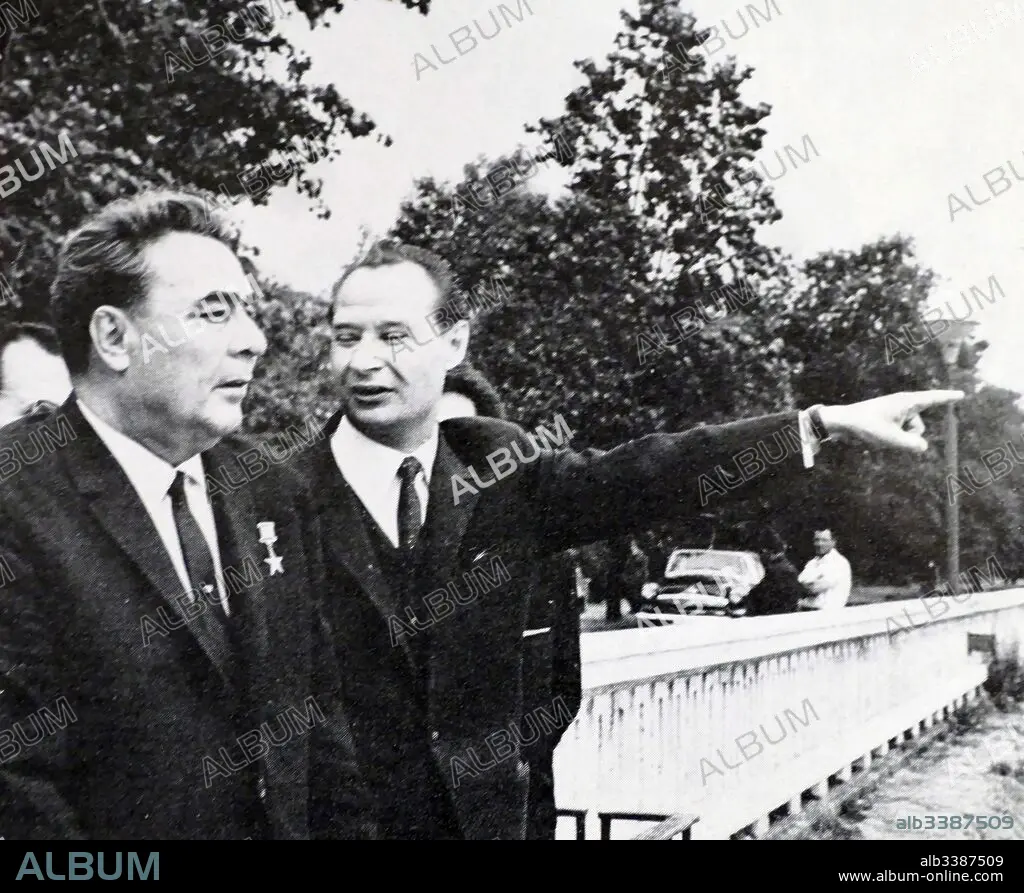 Photograph of Leonid Brezhnev (1906-1982) the General Secretary of the Central Committee of the Communist Party of the Soviet Union, with Alexander Dubcek (1921-1992) a Slovak politician and brief leader of Czechoslovakia. Dated 20th Century.