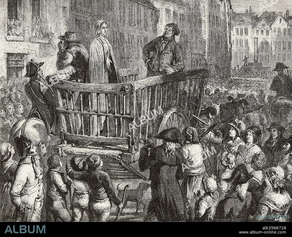 Charlotte Corday being led to the guillotine, engraving from French Revolution by Jules Janin, illustration from L'Illustration, Journal Universel, No 1149, Volume XLV, March 4, 1865.