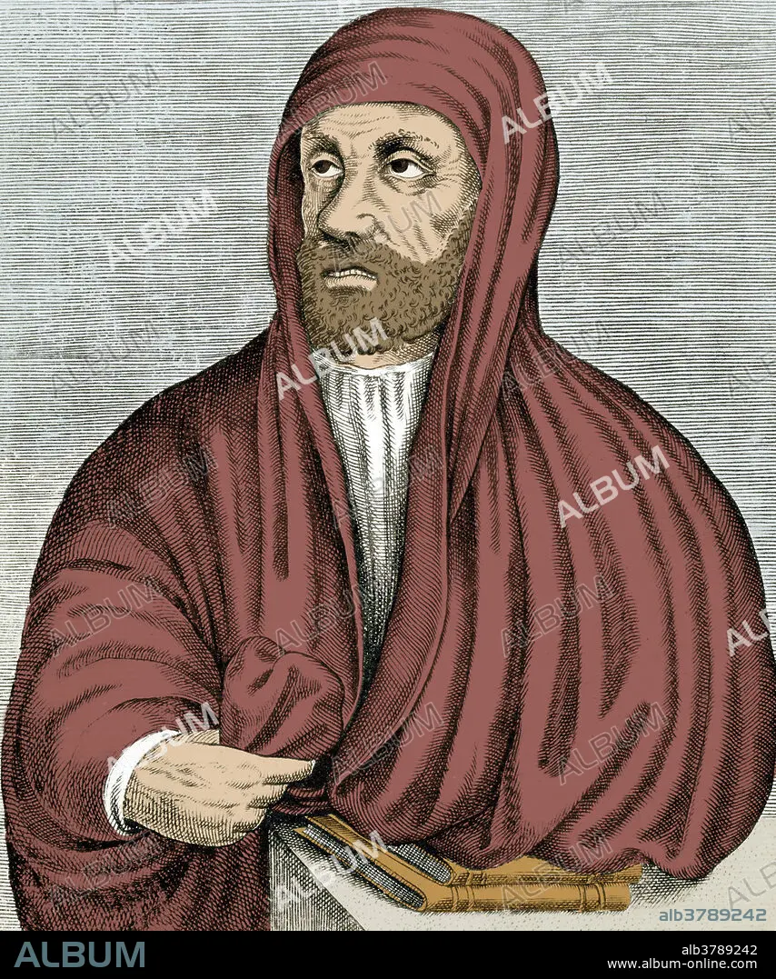 Ibn Sina, also known by his latinized name, Avicenna (980-1037), was a Persian Muslim philosopher, physician and scientist. He authored books on many subjects, the most famous being ''The Book of Healing and The Canon of Medicine.'' This book was used for centuries to teach medicine in European universities. Colored Version of BE9304.