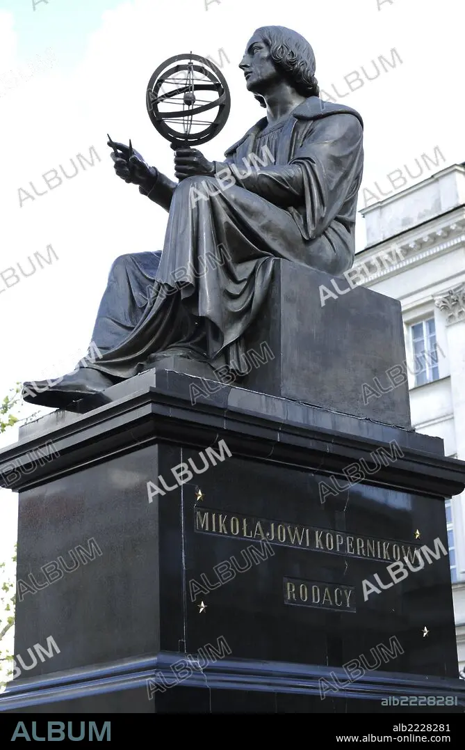 Descripción: COPERNICO, Nicolás (Torún, 1473-Franenburg, 1543) Astrónomo polaco, célebre por su tratado "De revolutionibus orbium caelestium libri VI" donde afirmaba que la tierra no está inmóvil en el centro del universo, sino que gira alrededor del Sol y de sí misma. ESTATUA del astrónomo realizada en 1830 por Bertel THORVALDSEN, ubicada frente a la Academia de las Ciencias. VARSOVIA. Polonia.